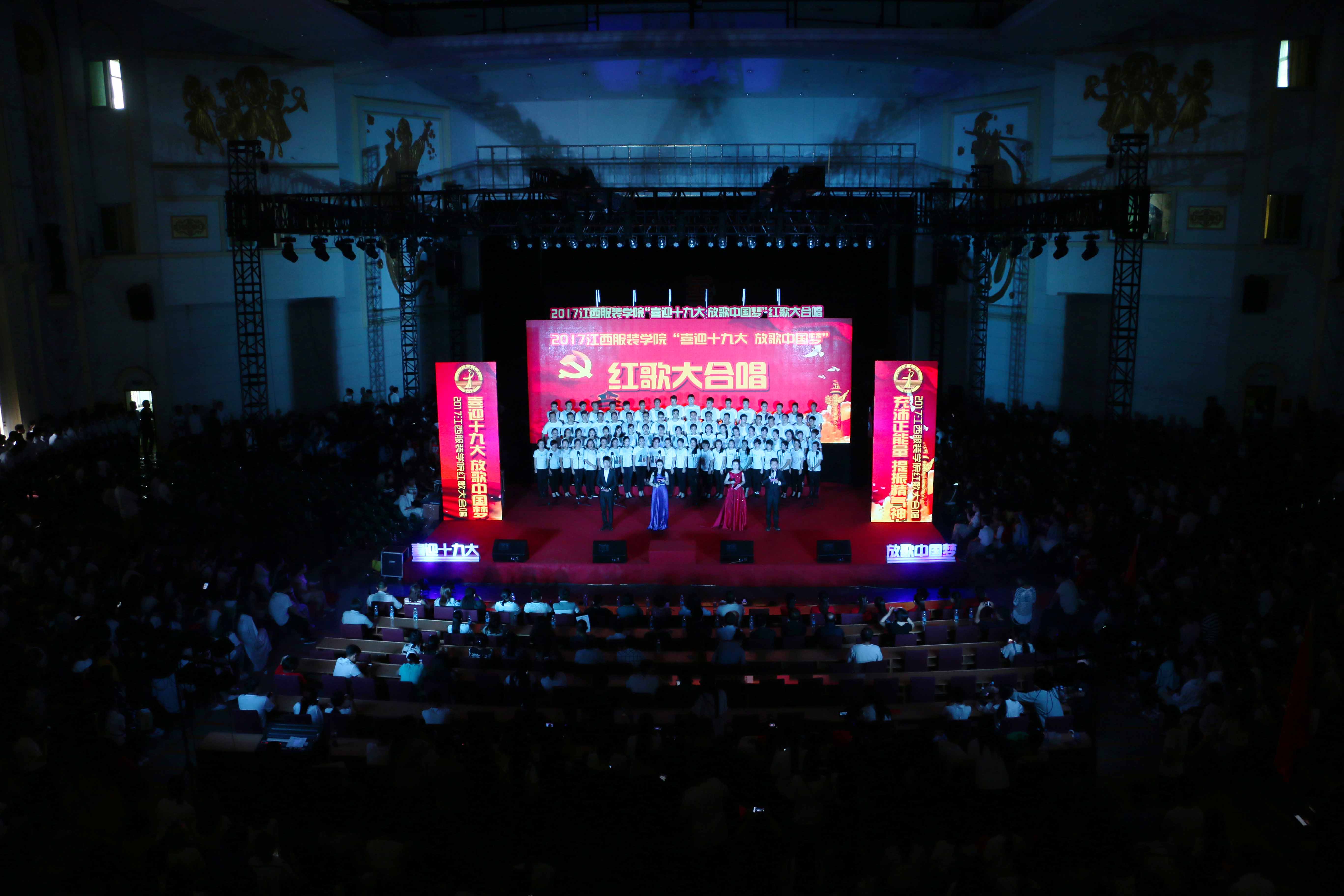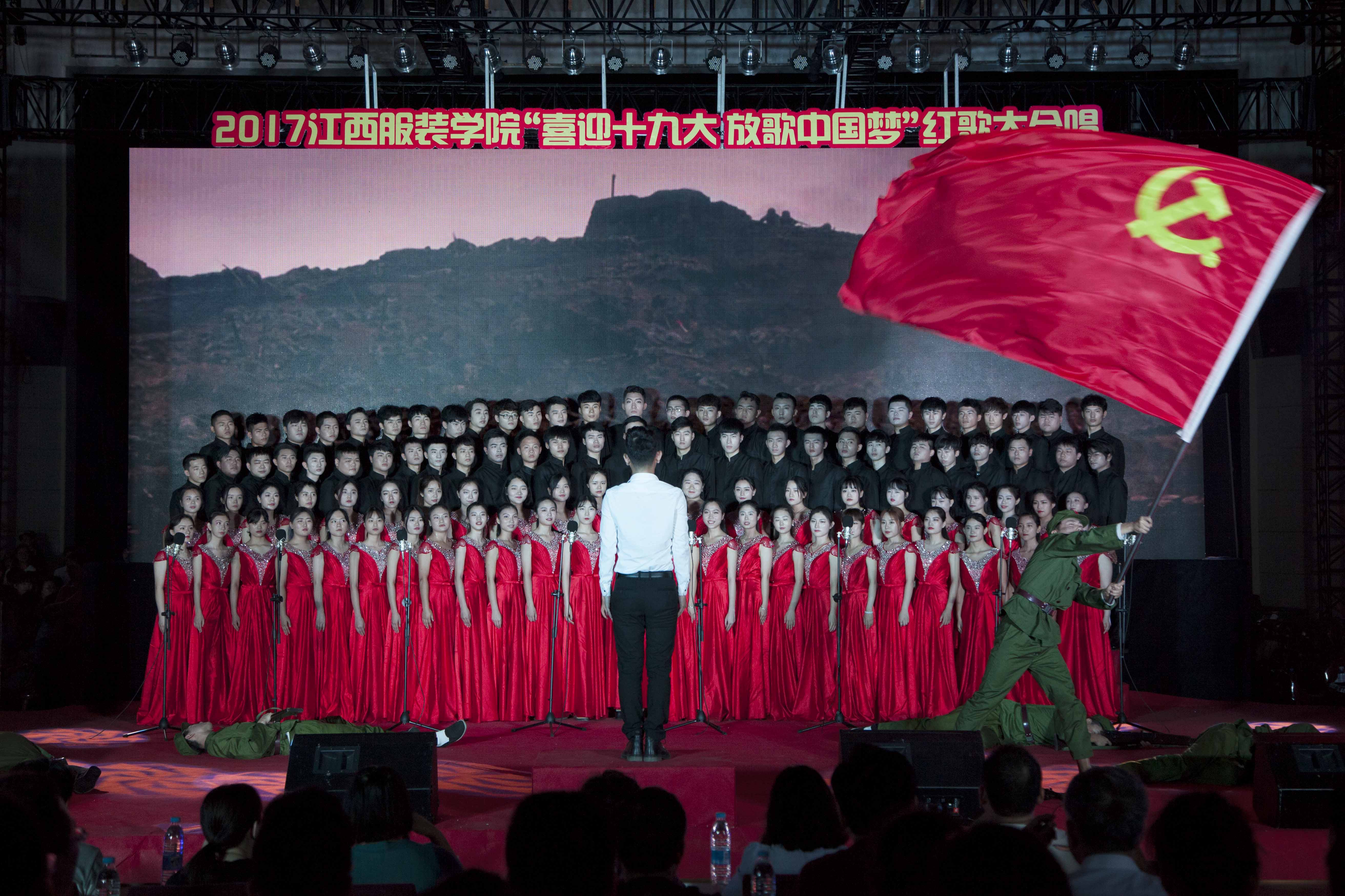 服装报讯(记者/廖智力 林慧萍 摄影/余婷 张蔷薇 鲍甜甜)飞扬的歌声,吟唱难忘的岁月。熟悉的旋律,演绎时代的乐章。5月23日下午,我校“喜迎十九大 放歌中国梦”红歌大合唱比赛在霓裳宫举行。校长陈万龙、副校长温容祯、党委副书记徐红先、副校长杨涛、党委副书记高建国、副校长胡放、总督学杨汉东亲临现场欣赏了这场精彩的盛典。