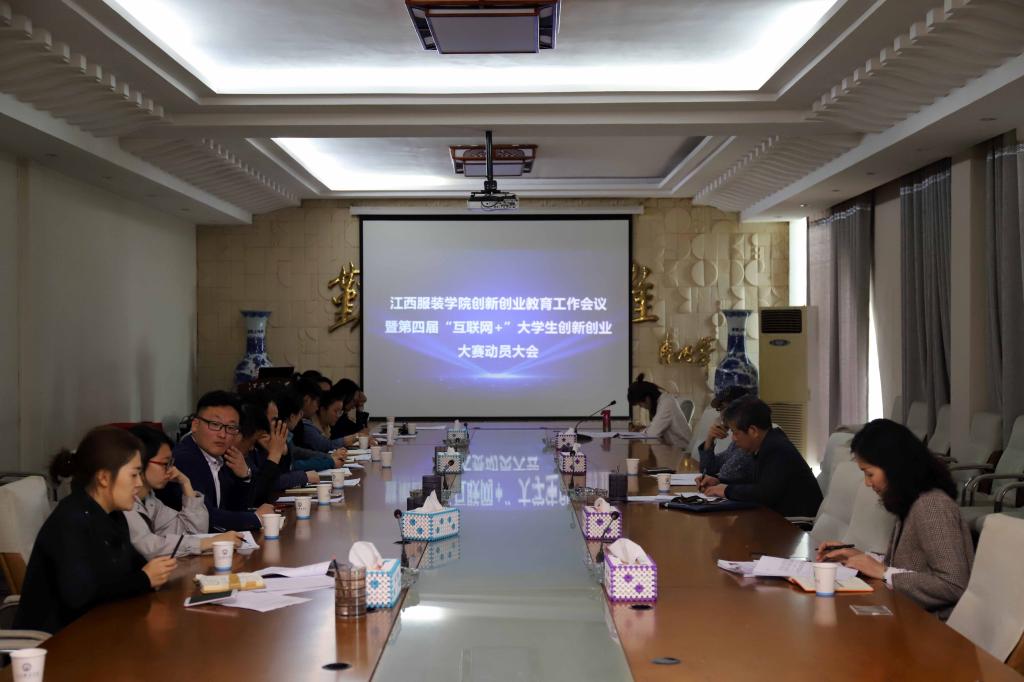服装报讯(创业学院 杨戬菲 摄影/万强)为深入学习贯彻习近平总书记给第三届中国“互联网+”大学生创新创业大赛“青年红色筑梦之旅”大学生重要回信精神,并落实《教育部关于举办第四届中国‘互联网+’大学生创新创业大赛的通知》(教高函〔2018〕2号)要求,切实做好“互联网+”大赛校内参赛组织工作,推进我校创新创业工作新局面,4月16日,我校在行政楼二楼会议室召开了创新创业教育工作会议暨第四届“互联网+”大学生创新创业大赛动员大会。校党委书记王建元、校长助理兼创业学院院长易城、各二级学院和职能部门负责人、创新创业教育专干参加了会议。会议由创业学院院长助理孟安然主持。