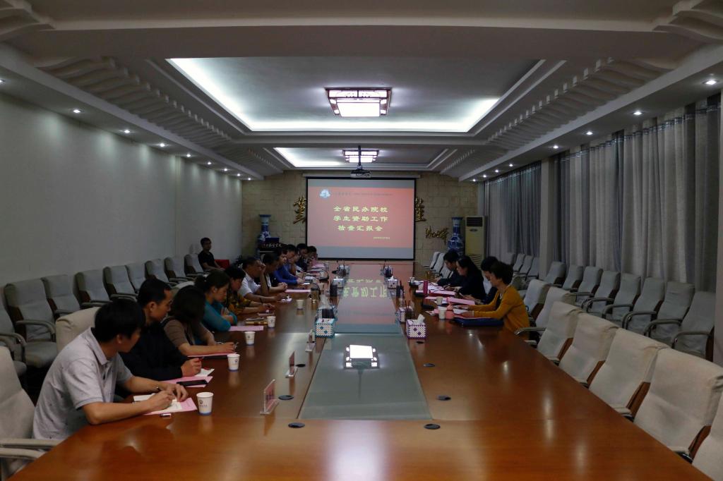 陈万龙校长首先代表学校对教育厅专家组来校检查、指导表示欢迎,他简要介绍了学校的历史沿革、基本办学情况及家庭经济困难学生资助现状等,并指出,我校十分珍惜当前国家对民办教育的相关政策,始终坚持按照国家规定进行资助工作,在培养学生方面不计成本,希望检查组对我校学生资助工作提出宝贵意见,大力地支持我校资助工作。汇报会上,刘志蓉组长说明了此次高校学生资助工作检查的目的、程序及相关要求,希望通过此次检查与调研,了解民办高校资助政策落实情况和管理过程中的问题、困难和建议,寻找学校亮点特色,推进规范化管理。