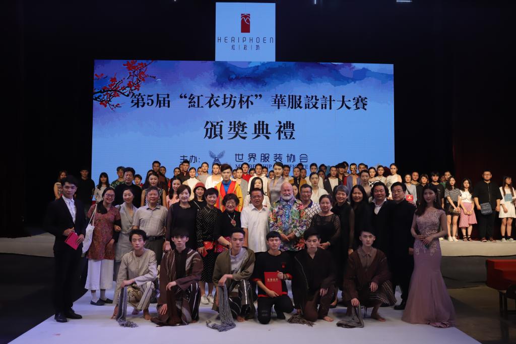 服装报讯(记者/黄海蓉 摄影/张柯邓 刘锭安)6月4日下午,第五届“红衣坊杯”世界华服设计大赛决赛暨颁奖典礼在万象城平台霓裳宫举行。来自香港理工大学、清华大学美术学院、中央美术学院等高校29个系列设计作品进行了动态展示,并参与大赛角逐,我校学生的作品《假象》获得金奖。