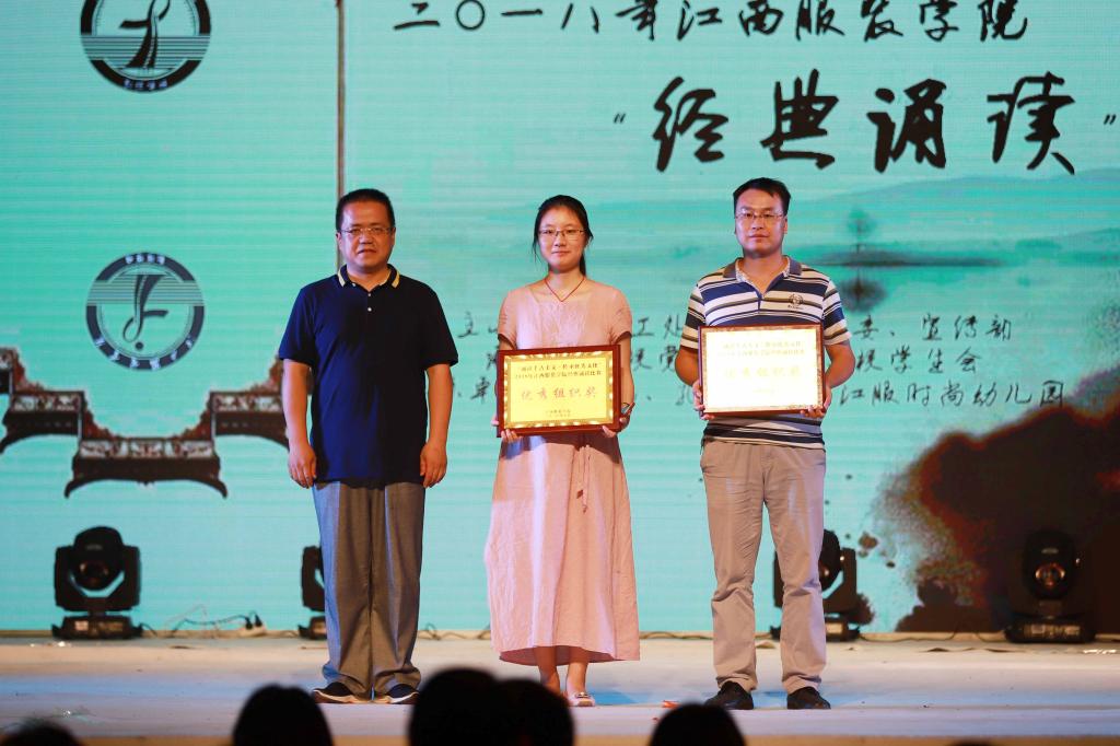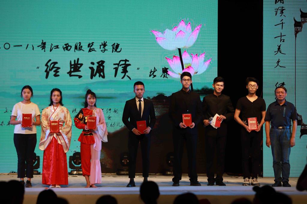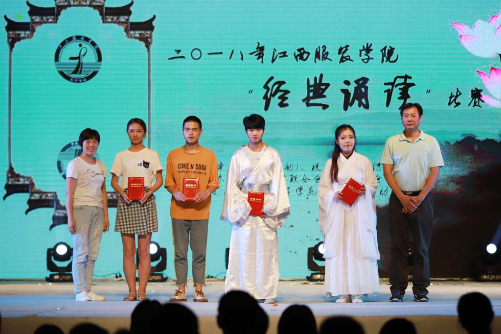 经过专家评委和大众评委的认真评审,17服饰四班黄洁同学的《木兰辞》荣获一等奖;17播本科一班的邢瑶、王硕同学带来的《与妻书》和15模本科1班先皓峰、童远辉同学带来的《乌骓别霸王》获得二等奖;17播本科1班韩志国、谢忠旺同学的《将进酒》、17服饰3班17服饰3班陈锦烨、胡丽姿同学的《将进酒》和17时装2班梁照、王章强同学的《望岳》获得三等奖;17电商2班程良宾、17财管5班包青博、敖敏同学的《赤壁赋》、17数媒2班的宋妮颖、易仪萱同学的《山行》、17播音本科2班的江学舟、孔文韬同学的《致橡树》获得优秀奖;此外,时尚传媒学院和服装设计学院获得经典诵读优秀组织奖。