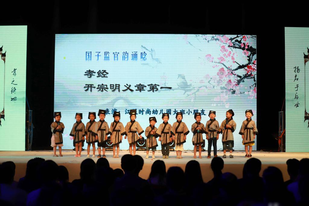 在一声声稚嫩的童声诵读中,比赛拉开了帷幕。霓裳宫里古韵悠悠,诗香阵阵,挥斥方遒,激扬文字。比赛分为三个篇章:先秦篇、唐宋篇和近现代篇。诵读中,学生们通过诵经典、唱经典、演经典,并结合舞蹈、音乐、书法等不同形式,多角度演绎了中华经典国学,其中,《木兰辞》慷慨激昂、铿锵有力,让人仿佛看到了巾帼英雄豪迈的气概;《将进酒》让观众们看到豪饮高歌的诗仙,借酒消愁抒发了忧愤深广的人生感慨;《与妻书》字字珠玑,情深意切,传递出林觉民在对妻子“爱”面前的“大爱”情怀,体现的是一名为国捐躯革命烈士的“热血”精神,让师生潸然泪下;集体诵读《服装赋》将活动气氛推向高潮,表达了同学们对我校本科评估工作的强烈希望和对学校未来发展的美好祝愿。