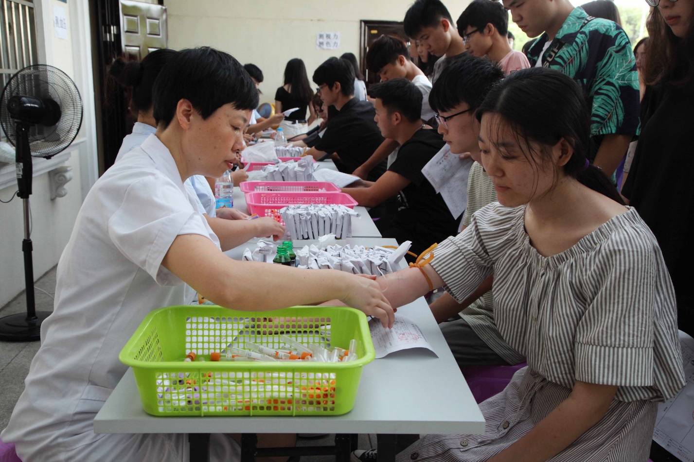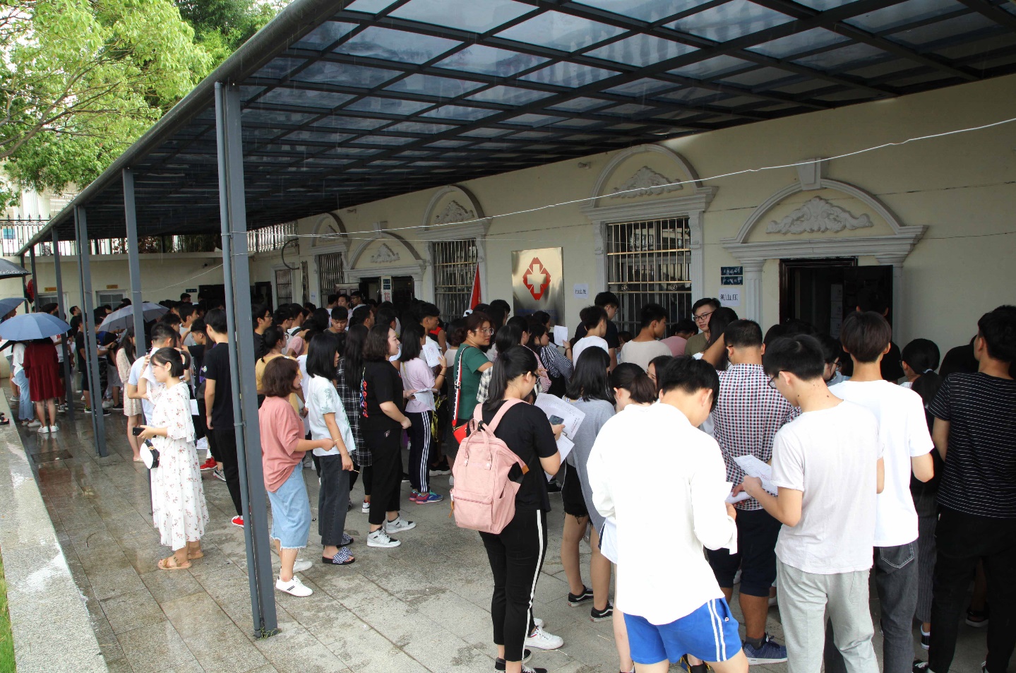 据了解,此次体检工作从身高、体重、视力、血常规、心肺听诊等方面展开。尽管在体检的过程中天公不作美,下起了淅淅沥沥的小雨,但是在指导老师和学校志愿者团队的带领和指引下,新同学们依然能积极配合完成体检工作,体检现场井然有序。学生志愿者团队十分贴心的为体检的新生准备了糖果牛奶等食物,让空腹体检的学生倍感温暖。心理健康咨询中心老师曹昊告诉记者,此次体检将持续开展7~9天,以学院为单位,每天上午体检约500名左右新生。为防止体检的新生发生低血糖的现象,学校将在31日上午安排早餐车来新生体检地点提供早餐。