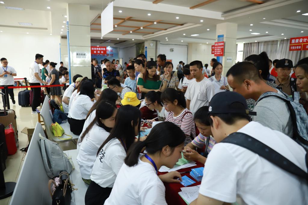 据招生办公室主任王敏介绍,今年我校为了做好迎新工作,作出了许多详细的部署工作。今年,各个学院都参与到整个迎新的报到、注册、分班分宿舍,同学和老师们在这一整个流程相互协助,帮助解决困难,速度快,效率高。尤其是在绿色通道、学费减免、助学金贷款等方面,做的尤为突出。大学生服务队人员配备也很充足,并且前期都进行了多次集中培训,为新生报到提供了优质、一站式接待服务,得到了新生和家长的交口称赞。在服务方面,为了给远在外地的新生及家长提供更贴心的服务,学校在南昌市火车站、客运站均设置了接站车辆,让新生及家长一出站就感受到浓浓的江服关怀。考虑到天气比较炎热,学校为在各个报到和接待地点都放置了饮用水,让远道而来的新生和家长在炎热的夏天感到一丝江服送来的凉爽。
