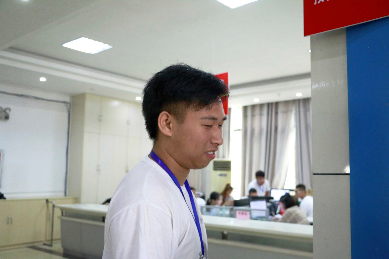 18数媒本科2班的晁阳在被问到对学校的印象时露出了满意的微笑,他表示从千里之外来到学校,学校师生的热情、校园优美的环境、服务的全面便捷都让他感到舒心放心,也希望在大学四年里自己能够加入一些社团去磨砺、学习。