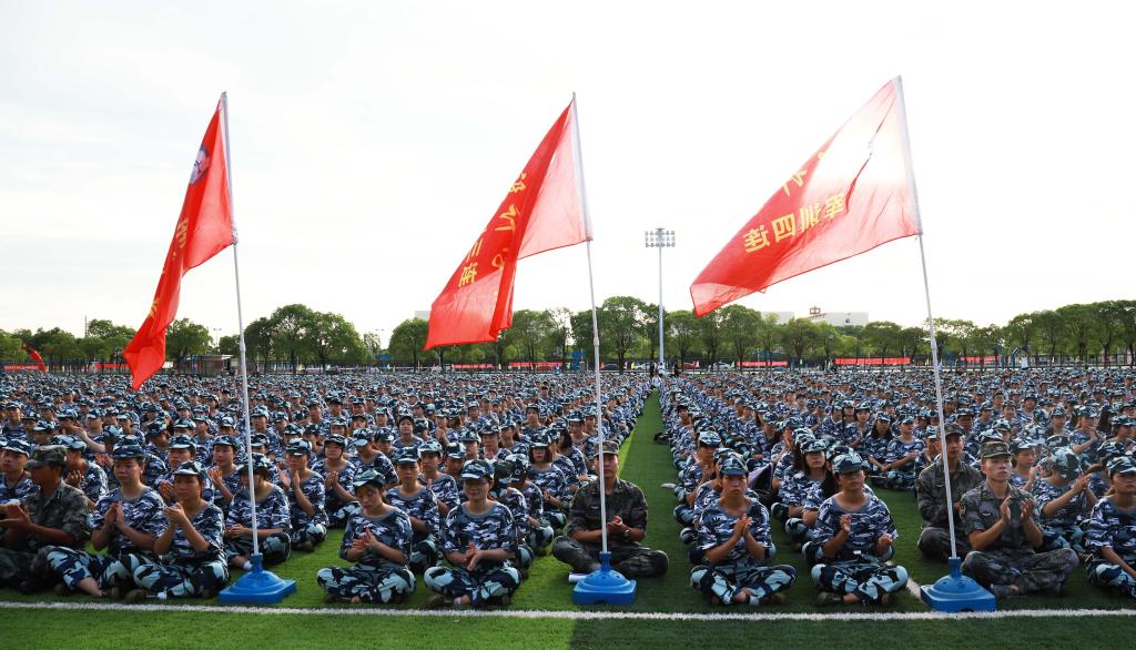 向前!向前!向前!我们的队伍向太阳!”军训动员大会在雄壮的《中国人民解放军军歌》声中圆满结束。2018级全体参训同学在教官的带领下开始为期近半个月的军事化训练,靡不有初 ,鲜克有终,千里之行,始于足下。相信同学们会以饱满的热情和昂扬的斗志,体验精彩的军训生活,在校园留下青春的奋斗足迹,愿如火骄阳,炼汝成钢。