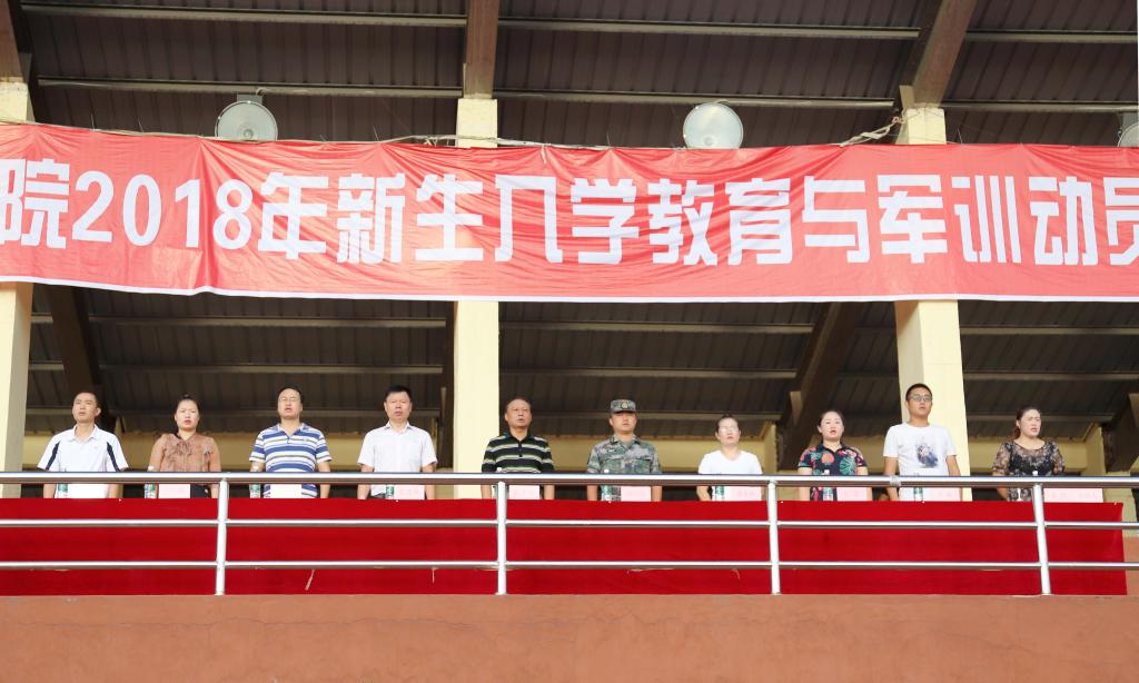 大会在庄严的国歌声中拉开了帷幕。承训部队教官负责人作新生军训动员讲话。他说,军训是向人民解放军学习的一种良好的形式,也是在校学生经风雨、见世面、长才干的重要途径。军训可以促进同学们身心健康成长,可以提高大家的思想道德品质,增强同学们的爱国主义、国防观念和组织纪律性,他向同学们提出了三点要求:一是希望同学们严以律己,克服困难,圆满完成军训任务;二是希望同学们在军训中学会关心集体和他人,建立深厚的战友情、同学情,增强集体荣誉感;三是希望同学们在每一天训练后认真总结,增强心灵深处的精神力量。
