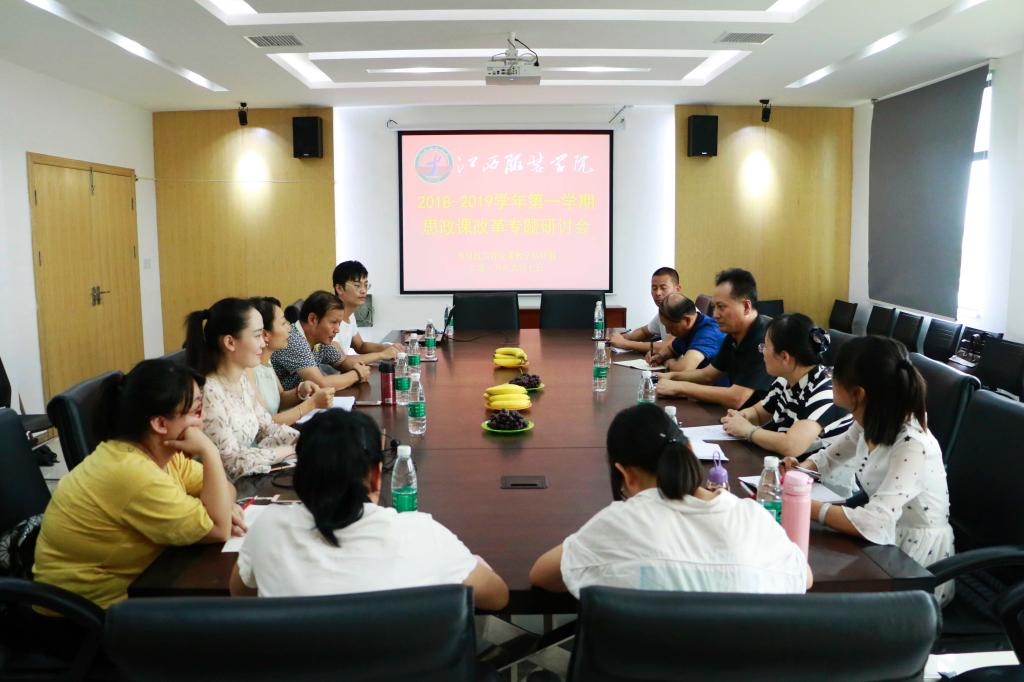 服装报讯(思政部 张龙龙 徐华磊) 为进一步落实全国高校思想政治工作会议精神,认真贯彻落实教育部《高校思想政治理论课教师队伍建设专项工作总体方案》要求,迎接本科教学合格评估,推动我校思政课改革,9月7日下午,我校思想政治理论课教学科研部召开2018-2019学年思政课改革专题研讨会。分管教学的副校长陈东生、党委副书记高建国和公教部主任胡伟、思政部副主任支娜娜以及全体思政部专职教师参加了会议,思政部副主任娄英英主持研讨会。