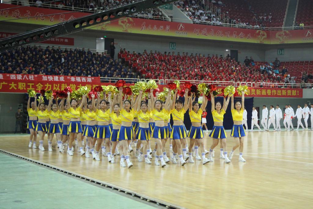 今年秋季开学初,开幕仪式导演组就来到学校为大会服务选拔礼仪引导员,来自各学院的80名学生成功入选。从选拔引导员到开幕式正式开始,在近一个月的时间里,入选的80名同学经历了各种挑战和磨炼,在体育场礼仪站姿一站就是一个多小时,但是他们按照导演组的要求,顺利完成了入场式各县区和各单位队伍的引领任务,受到大会导演组的高度赞誉。