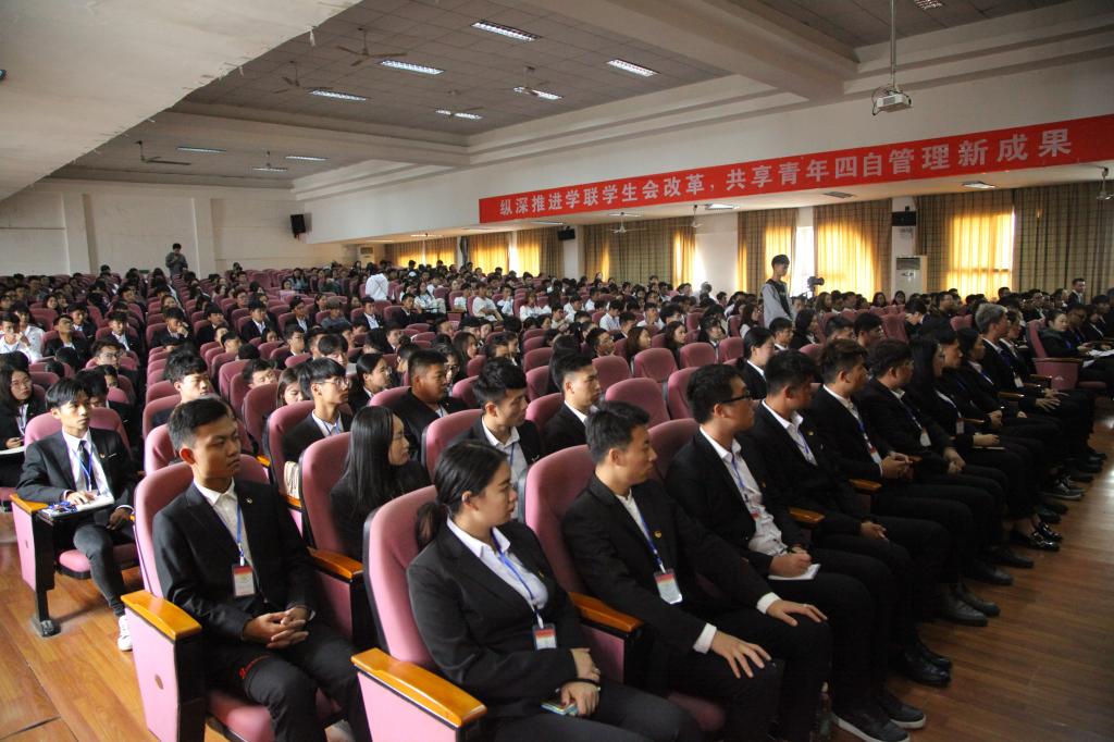 会议在庄严的国歌声中拉开帷幕,会议中,代表们认真履行职责,按照大会的议程安排,听取、审议了万象城平台第二十届学生委员会工作报告。