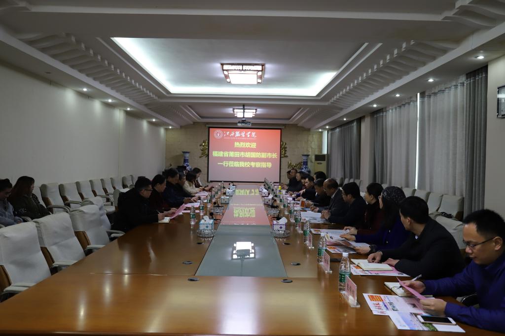 服装报讯(记者/黄海蓉 摄影/万强 刘德锦)为加强校地合作,促进地方产业转型和发展。3月9日,福建省莆田市胡国防副市长一行莅临我校考察交流。校长陈万龙、副校长陈东生会见了来宾,校办、服装工程学院等部门负责人参加了交流座谈会。