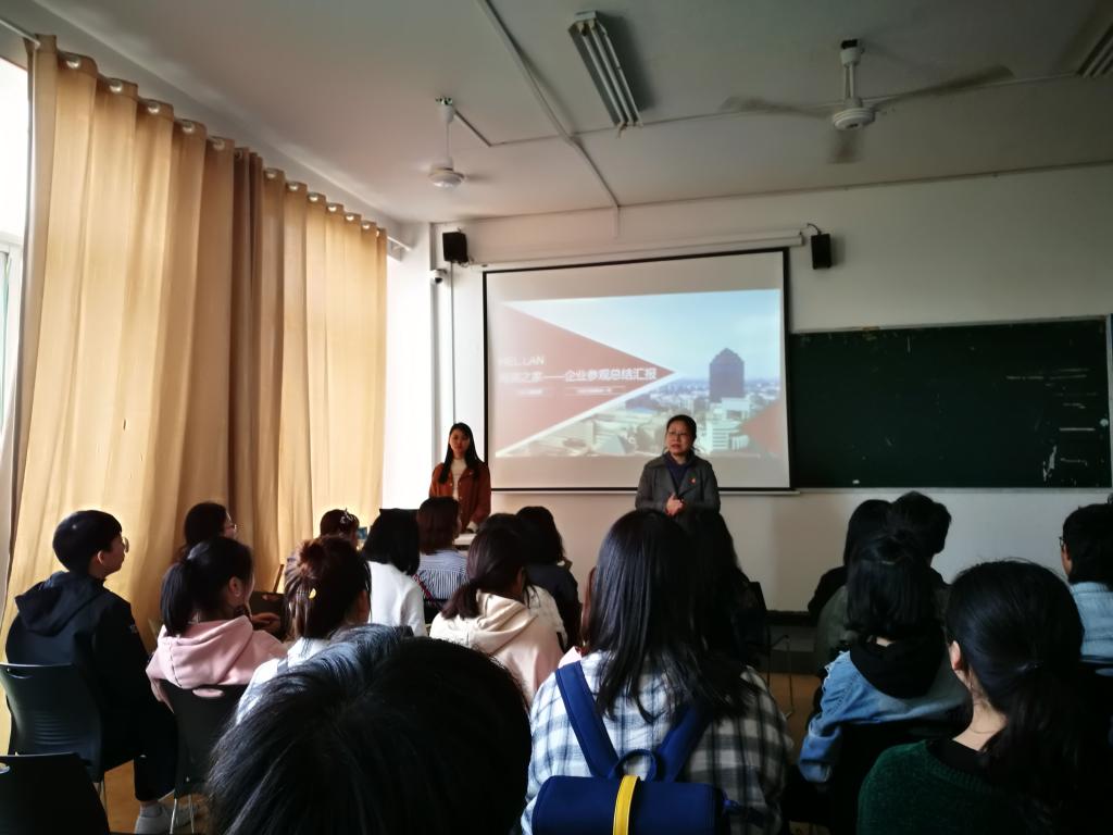 刘琼首先向同学们详细介绍了赴海澜集团参观的情况。她说,与海澜集团的合作是学院探索校企合作,致力于学校教学与就业市场无缝对接的又一尝试,对进一步加速学院教学改革,完善应用技术型人才培养模式将产生积极作用。同时,对于学院同学们就业而言,海澜集团也是一个极佳的就业选择和发展平台。希望同学们通过本次汇报会的介绍,在对公司充分了解与自我考虑的基础上,积极参加海澜订单班合作项目,为未来打下扎实的基础。