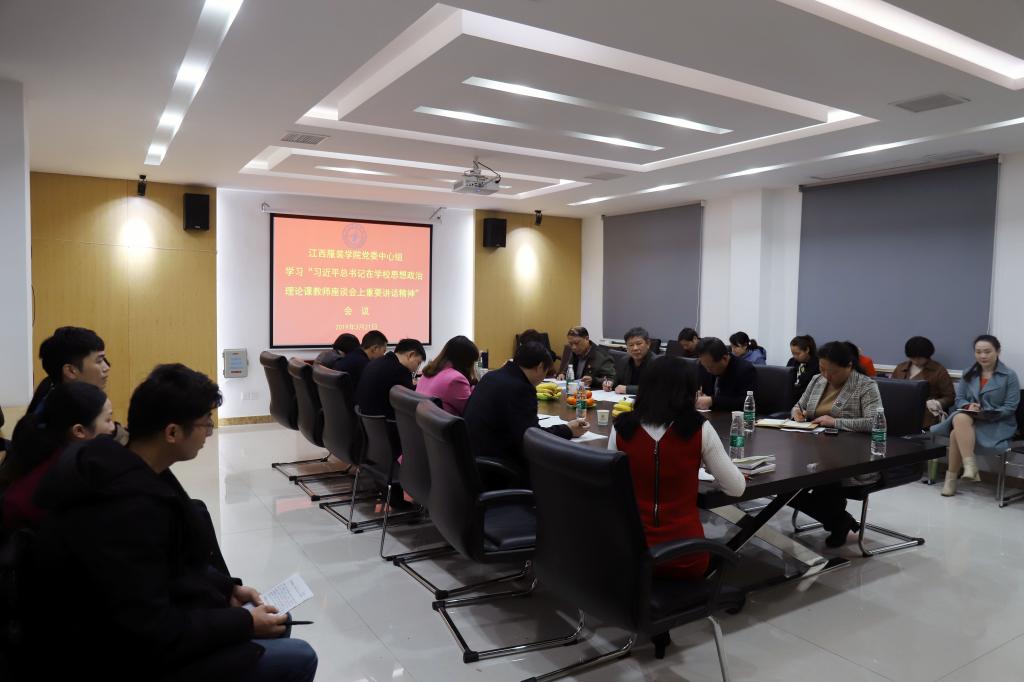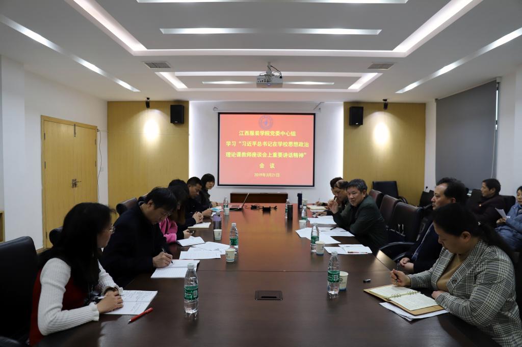 服装报讯(图/文 万强)3月21日上午,我校党委书记王建元、副校长陈东生、党委副书记高建国来到清源区教学会议中心思政部会议室,组织了思政课教师专题座谈会,认真学习贯彻习近平总书记在思政课教师座谈会上的重要讲话精神。学校党委组织部、宣传部、教务处、学工处、团委负责人和思政部全体教师参加了座谈会。 王建元书记主持了座谈会。