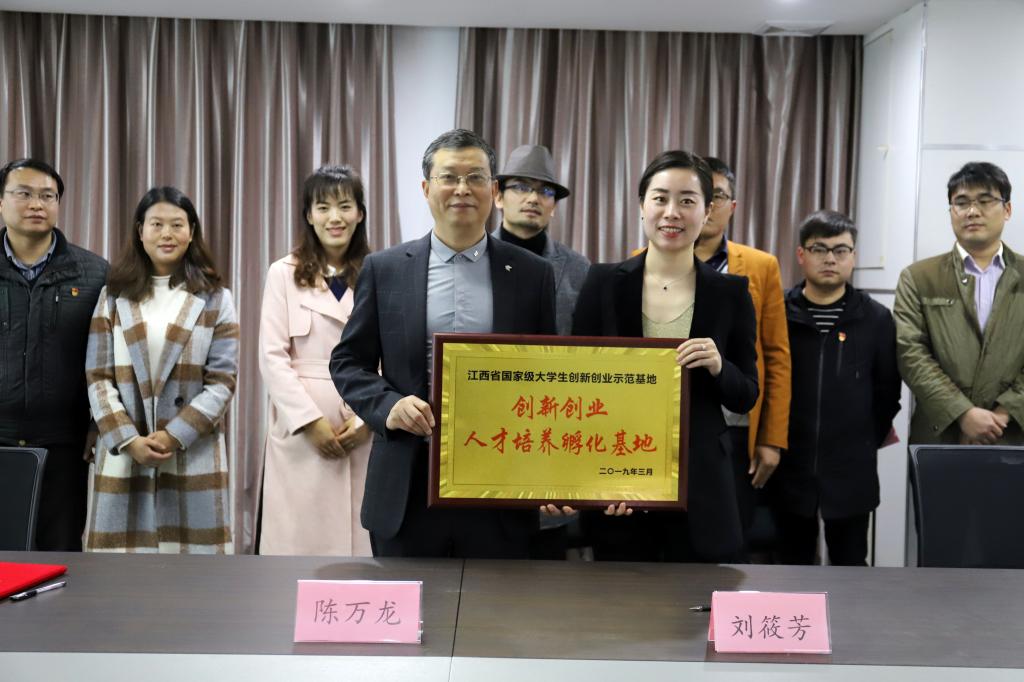 双方就创新创业合作方面进行了充分交流,达成了合作共识。校方与基地签约共建创新创业教育实践基地,并相互授牌。授牌仪式上,陈万龙校长为江西省国家级大学生创新创业示范基地总经理刘筱芳、副总经理徐贤颁发了创业导师聘书。
