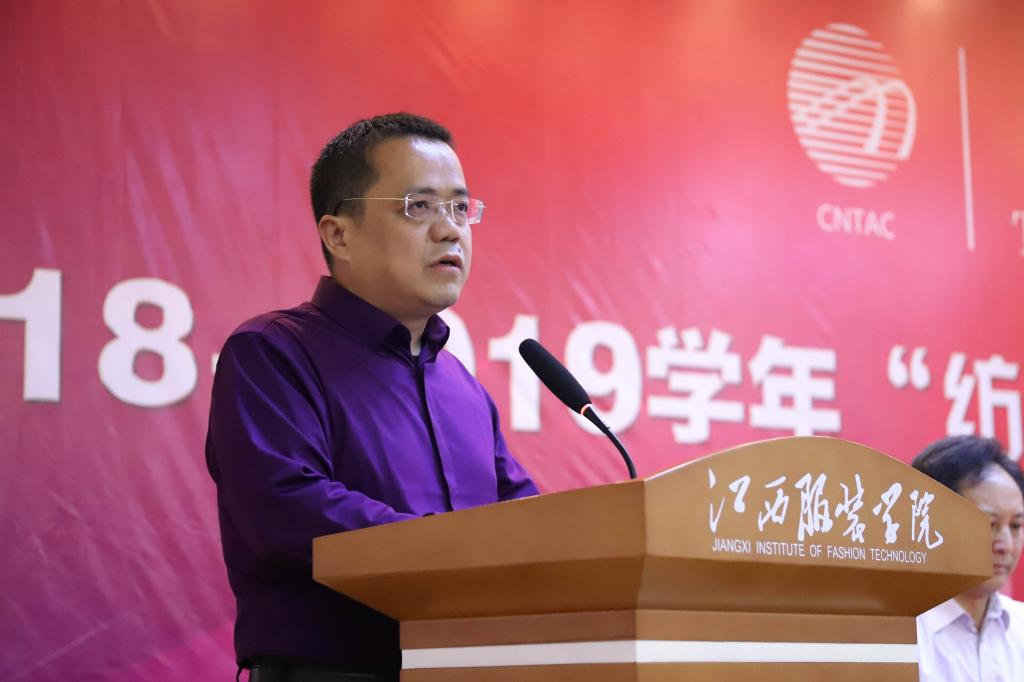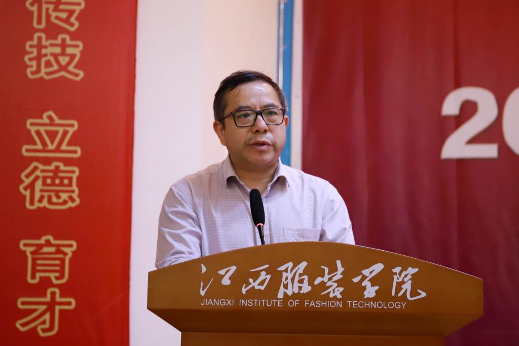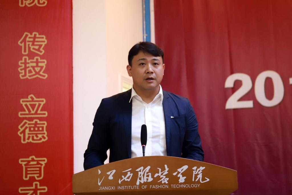 中国服装协会秘书长焦培在大会上讲话,他认为,江服以培养应用型、实用型人才闻名,为行业输送了大批人才,得到业界广泛认可,这说明学校的教学方法正确,教师学生素质优秀。他指出,服装行业服装产业正在从劳动密集向技术密集、知识密集型产业转变,产业发展进入高质量发展新时代。中国服装协会多年来一直积极参与扶贫事业,这是行业的责任。他希望同学们把感恩转化为知识、产业情怀,今后在行业上大显身手。