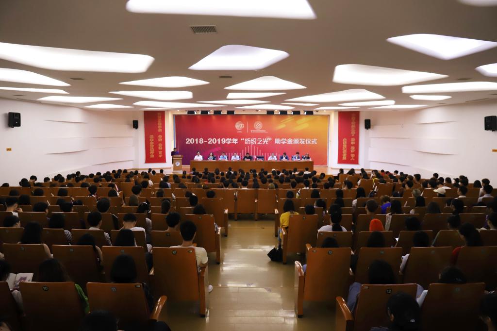 校党委副书记高建国宣读了2018—2019年“纺织之光”助学金评审结果的通知。
