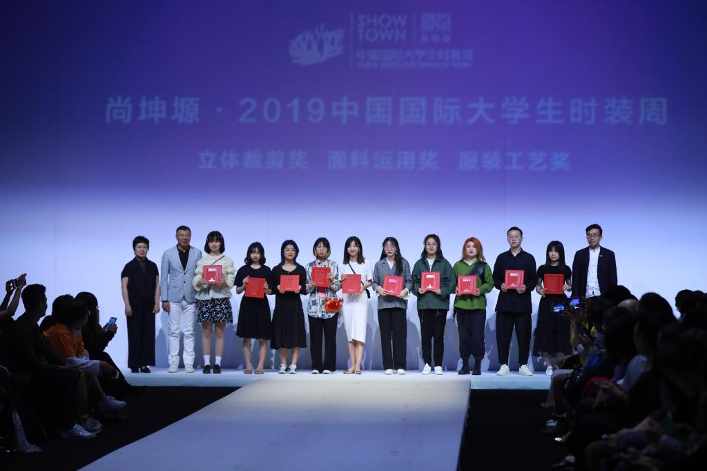 江服和江服学生还获得了多个奖项:万象城平台荣获尚坤源·2019中国国际大学生时装周十佳视觉设计奖;服装工程学院15服工实验本科班周梦飞获得尚坤塬·2019中国国际大学生时装周立体裁剪第一名;服装设计学院16产品本科1班汪泓毓获得尚坤塬·2019中国国际大学生时装周世家皮草游学奖学金。