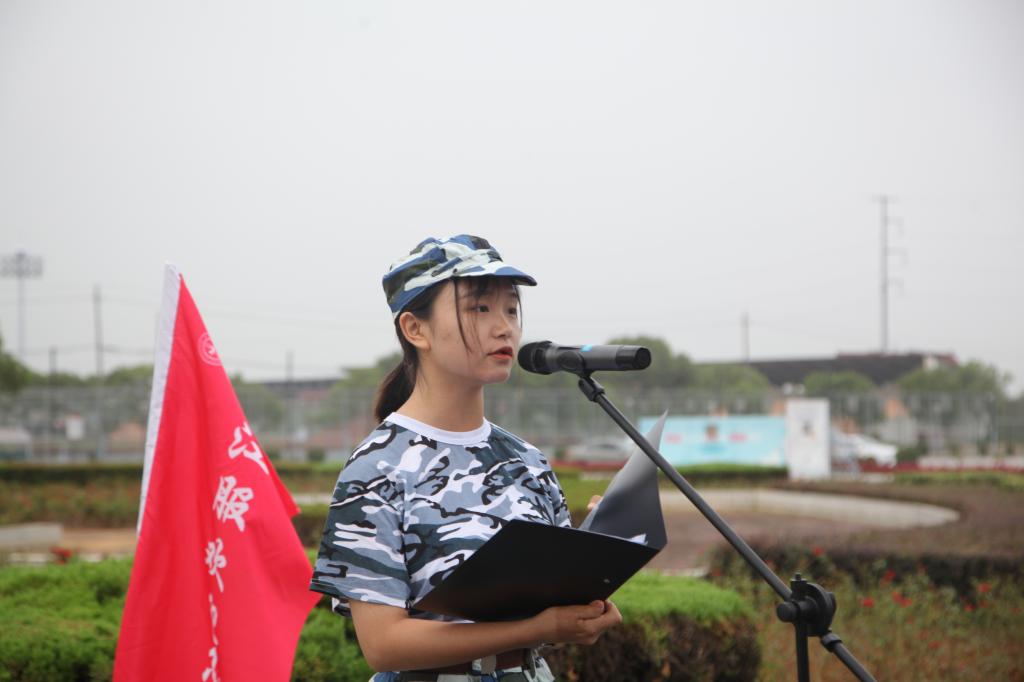 校团委老师张震带领新生们向庄严的五星红旗宣誓,嘹亮的誓词久久的回荡在校园中。