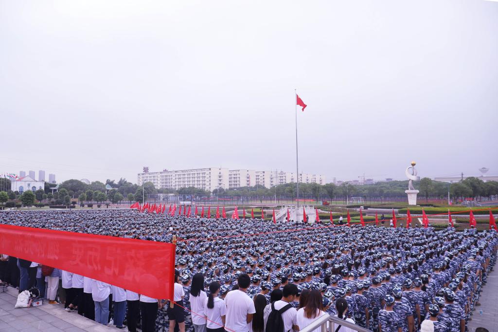 服装报讯(记者/周晨涛 方雯鑫 摄影/万强 周建涛)致敬历史,同沐荣光。9月3日清晨,我校党委副书记高建国,校党委委员、学工部(处)长张建荣,军训教官大队指挥员,以及各学院党总支副书记、全体教官、辅导员、班主任、班主任助理和2019级全体新生4200多人在主教学楼广场整齐列队,隆重举行了纪念中国人民抗日战争暨世界反法西斯战争胜利74周年升国旗仪式。校团委书记朱红主持了升国旗仪式。