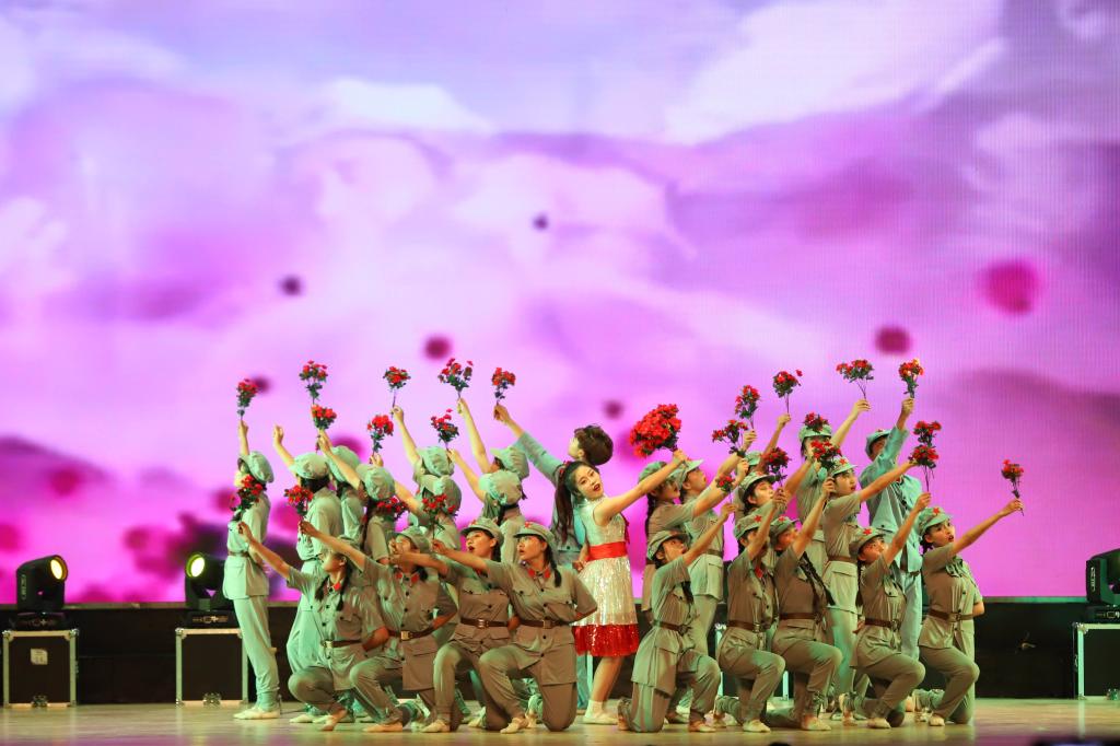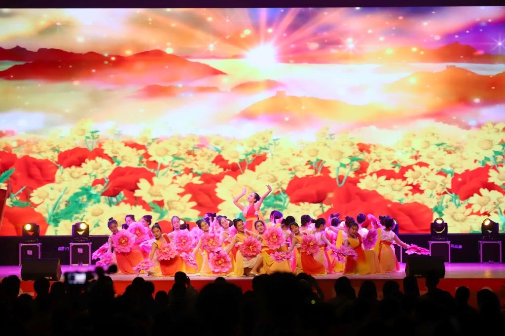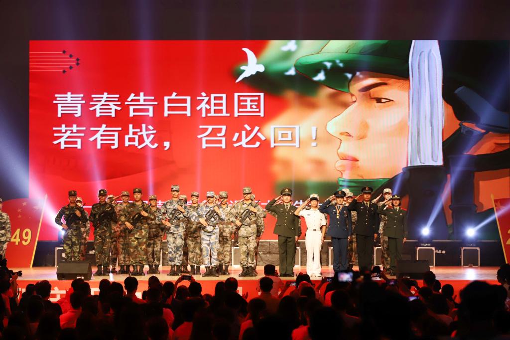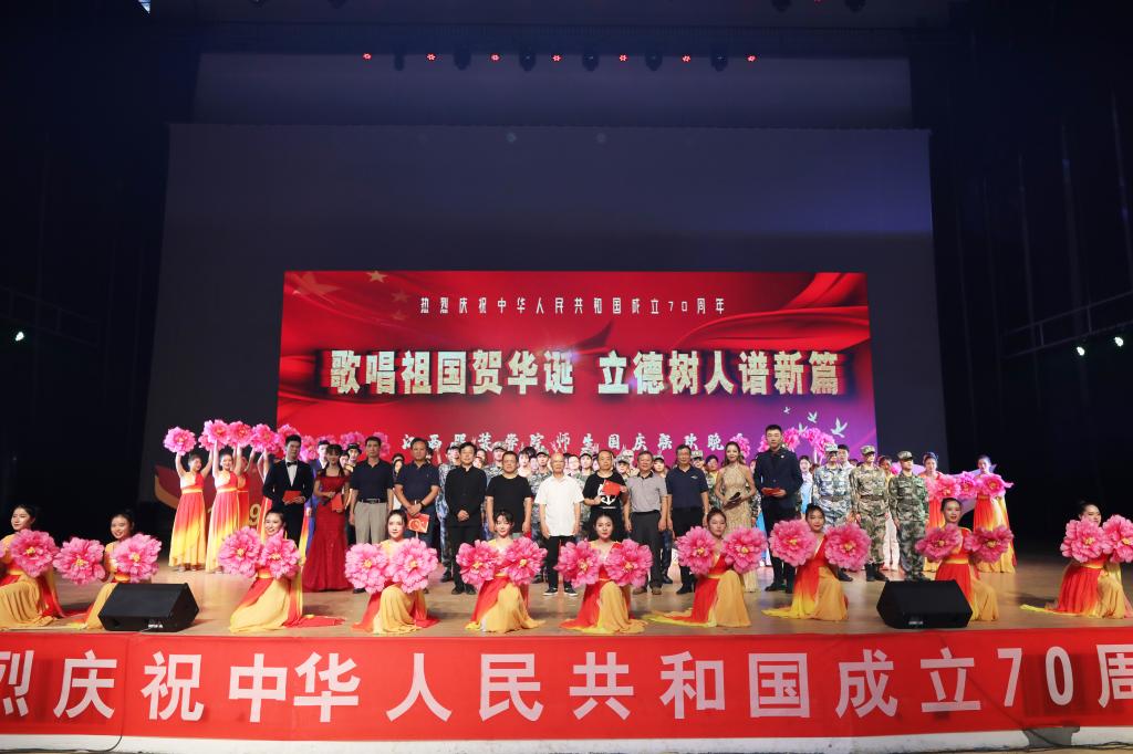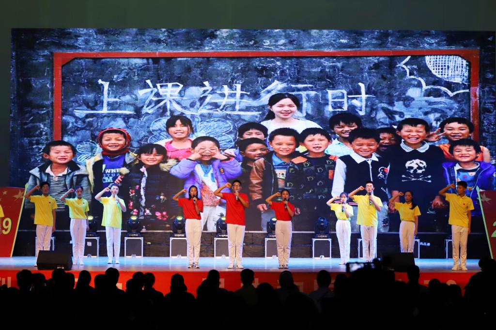 第三篇章《初心》,一曲《不忘初心》唱出了新时代共产党员以身许党的心声;诗朗诵《见信如面》表达了我校师生坚持立德树人,努力成长为德智体美劳全面发展的社会主义建设者和接班人的心声和誓言;歌曲联唱《新时代采茶歌》以同学们喜爱的表演形式唱出对祖国的深切热爱;由我校退伍复学的同学和国旗护卫队员带来的特别节目《热血青春 迷彩绽放》中,退役军人的“青春告白祖国:若有战、召必回”,表达了退役军人退役不退志的使命担当,和对祖国母亲深深的热爱和祝福,迎来观众满堂喝彩,将晚会气氛推向顶峰。晚会在歌伴舞《盛世花开》和现场演职人员共同深情演唱《歌唱祖国》的激昂旋律中圆满落幕。