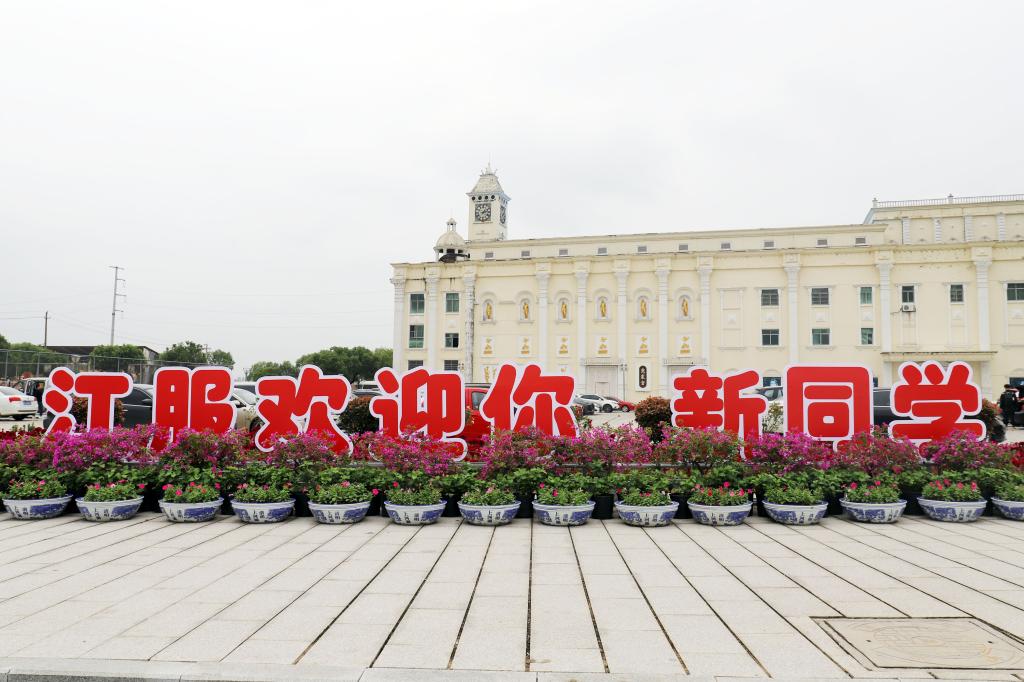 校园主干道上,色调明艳的彩旗整齐排列;一句句真挚的美好祝愿,凝练成一条条迎风招展的横幅;从校门口到报到点,沿路的地面和路旁都设有醒目标识,为来往的新生和家长指引方向;“江服信封”“我爱江服”“江服欢迎你”等造型新颖的雕塑展板引得新生和家长纷纷驻足,拍照留念。学校宣传部精心准备的迎新标语和精美的展板,营造了朝气蓬勃的迎新氛围,生动展现了校园文化和人文内涵底蕴,在开学第一天为校园点亮了美丽的风景线。