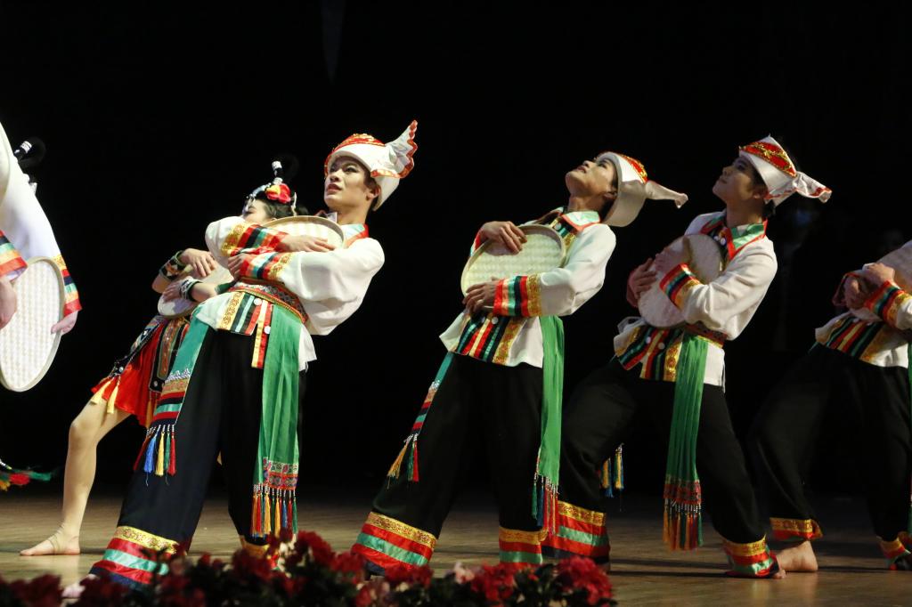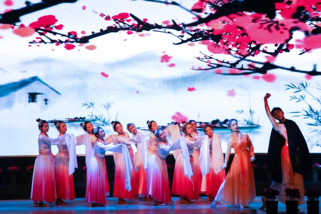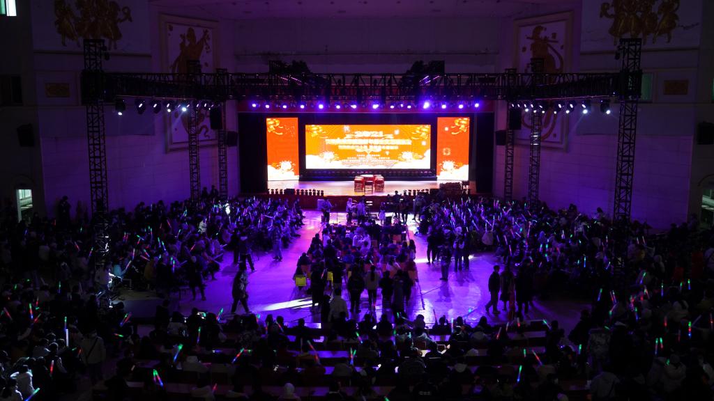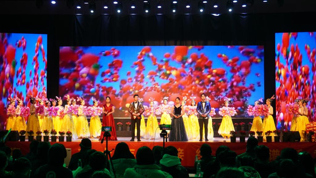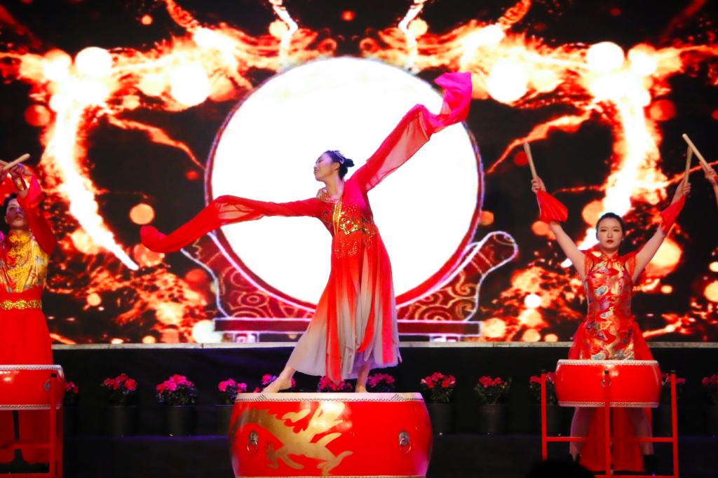 14点整,来自社团联合会乐队的暖场表演点燃了全场的热情,联欢会在艺术团舞蹈队的《鼓舞飞扬》表演中拉开序幕。