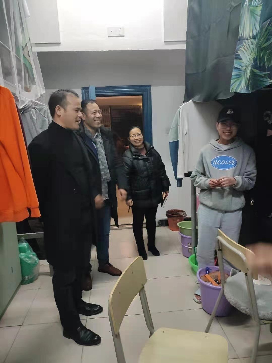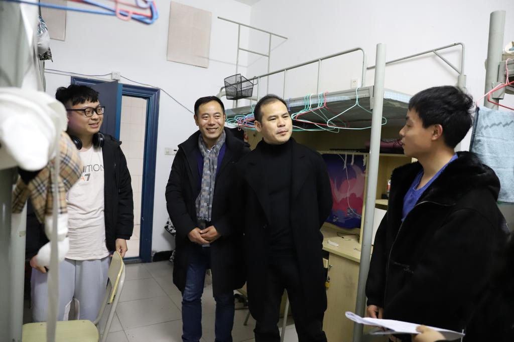 在学生返校期间,校领导心系学生学习生活情况,2月28日晚,校党委副书记唐新强、校长助理马国照带领各学院相关负责人、全体辅导员先后来到教室、学生公寓,亲切看望慰问返校学生,了解同学们寒假的生活、学习情况以及新学期学习计划,送上学校的关怀和问候。勉励大家坚定理想信念,厚植爱国主义情怀,培养乐观向上的人生态度,并嘱咐大家及时调整状态,以饱满的热情投入到新学期的学习生活中。