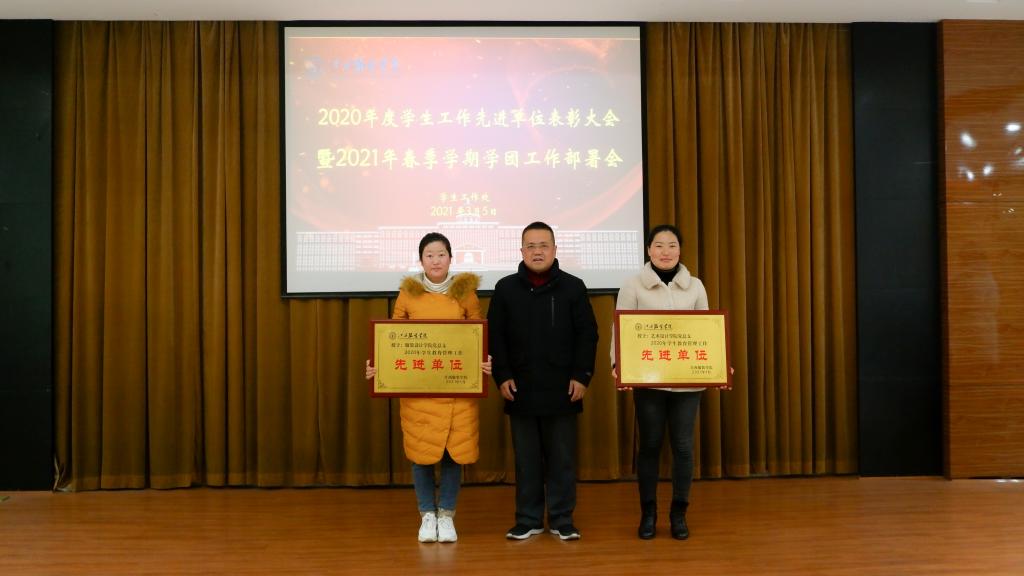 会议开始,学工处处长邓良峰宣读了《关于表彰我校2020年度“优秀辅导员”“优秀班主任”“优秀宿管员”“先进个人”的决定》、《关于表彰2020年度二级学院学生教育管理工作先进单位的决定》等文件。吴圣琦等5名同志获2020年度“优秀辅导员”称号;吴晓璞等15名同志获2020年度“优秀班主任”称号;曾宪果等6名同志获2020年度“优秀宿管员”称号;艺术设计学院、服装设计学院获2020年度学生教育管理先进单位。党委副书记唐新强为2020学年度学生工作先进个人颁奖,理事长涂顺强为2020学年度学生教育管理先进单位颁奖。