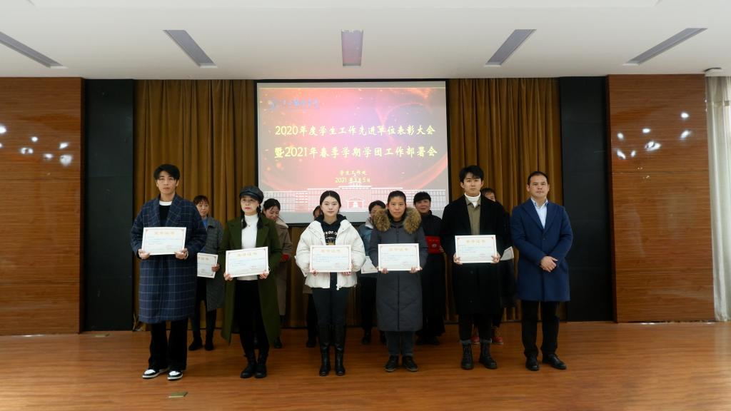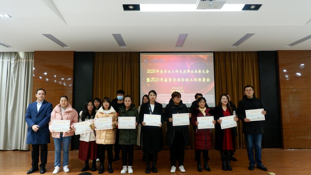 新闻中心讯:3月5日下午,我校在行政楼一楼报告厅举行2020年度学生工作先进集体和先进个人表彰大会暨2021年春季学期学生工作部署会,学校理事长涂顺强、党委副书记唐新强及学校学团系统100余人参加了会议,校团委书记孟安然主持会议。