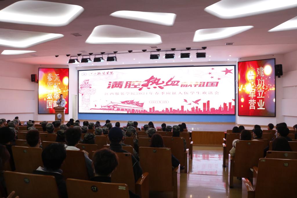 新闻中心讯:3月7日下午,我校2021年春季应征入伍学生欢送会在思贤楼三楼报告厅隆重召开。学校党委副书记唐新强、学工部部长邓良峰、武装部副部长鲍鹏、各学院党总支书记(副书记)、学工办主任(副主任)、毕业年级辅导员、应征入伍学生及家属、在校生代表共计400余人参加欢送会。