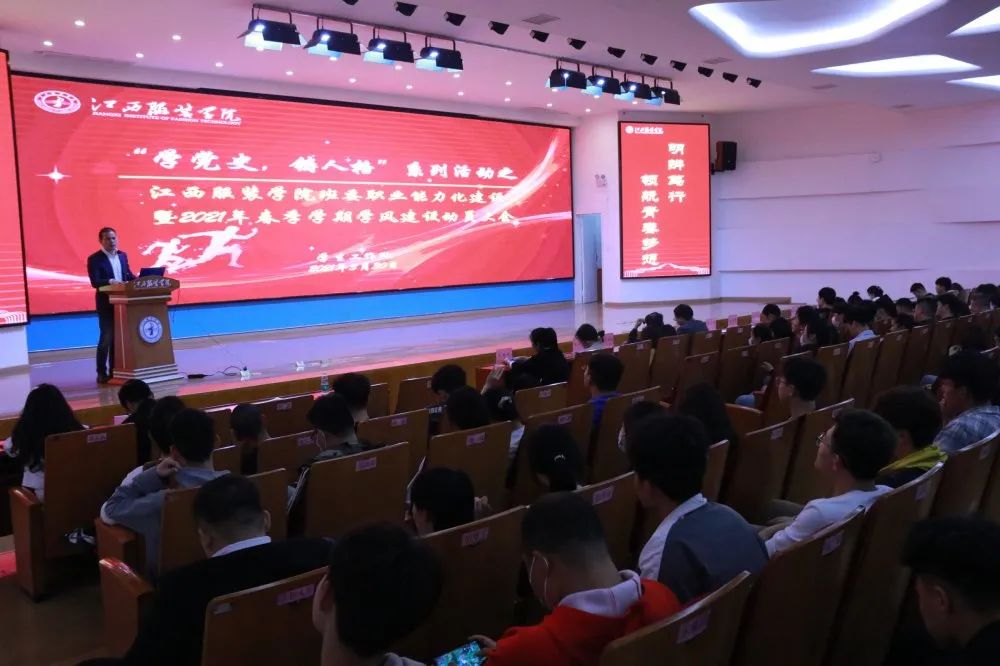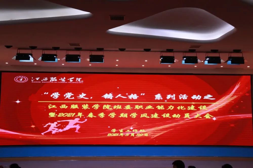 新闻中心讯3月30日晚18时,我校在思贤楼三楼报告厅召开“学党史,铸人格”系列活动之班委能力职业化建设暨2021年春季学期学风建设动员大会,校党委副书记唐新强、学工处处长邓良峰、副处长黄朝辉、各学工办主任(副主任)及全体辅导员、在校全体班长、校学生会、党建联合会、社团联合主要学生干部共计400余人参会。