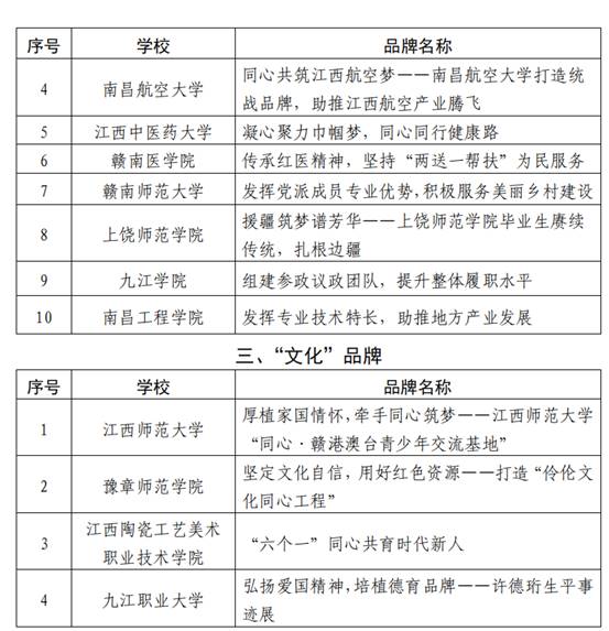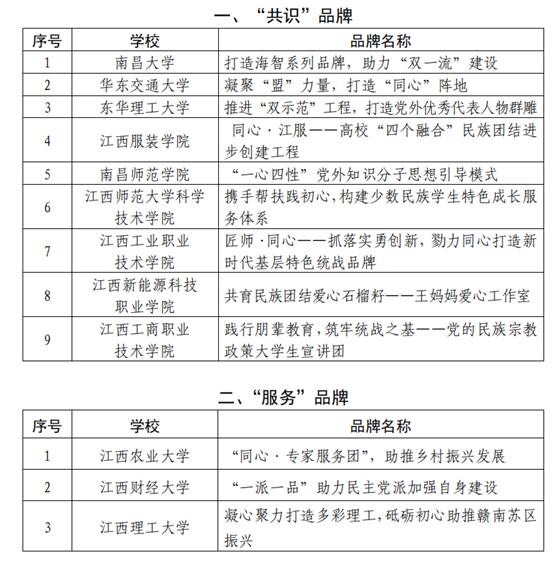 近日,省委教育工委发布《关于公布江西省高校统战品牌项目的通知》,评选出9项“共识”品牌,10项“服务”品牌,4项“文化”品牌。我校申报的《同心·江服——高校“四个融合”民族团结进步创建工程》被评为“共识”品牌。