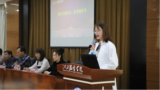 仪式上,学生代表郑瑀宣读了《读书活动倡议书》。