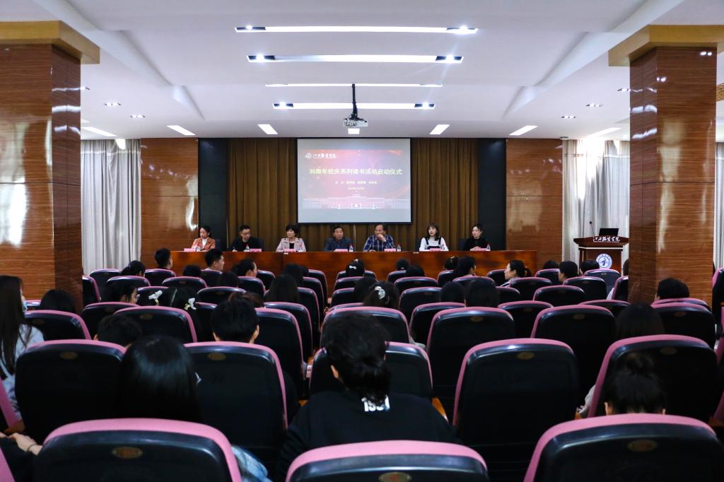 新闻中心讯4月20日,为庆祝中国共产党百年华诞,喜迎建校30周年,在第26个“世界读书日”到来之际,学校在行政楼报告厅举办了“30周年校庆系列读书活动”启动仪式。校长薛家宝出席仪式并作讲话,校团委、图书馆、人事处等相关部门负责人和师生代表170余人参加活动,仪式由副校长陈东生主持。