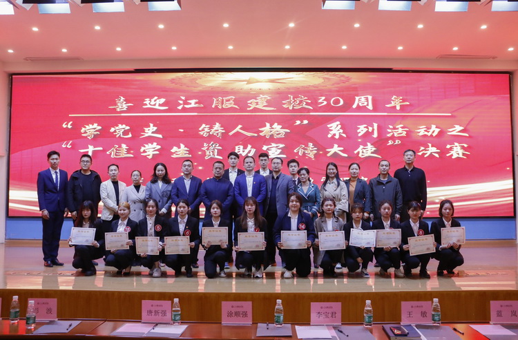 活动现场,学工处处长邓良峰解读了《学生资助宣传大使职责》,他强调,学生资助宣传大使要切实履行做好资助政策宣传、讲好江服故事、做好励志引领的职责,让更多的人知道党和国家的资助政策。随后15位参赛选手逐一登台演讲,以感恩资助、筑梦成长为主线,讲述自己的受助经历、国家及学校资助政策以及在学校励志成长的过程。经过激烈的角逐,最终肖传胜等十位同学获得“十佳学生资助宣传大使”荣誉称号。