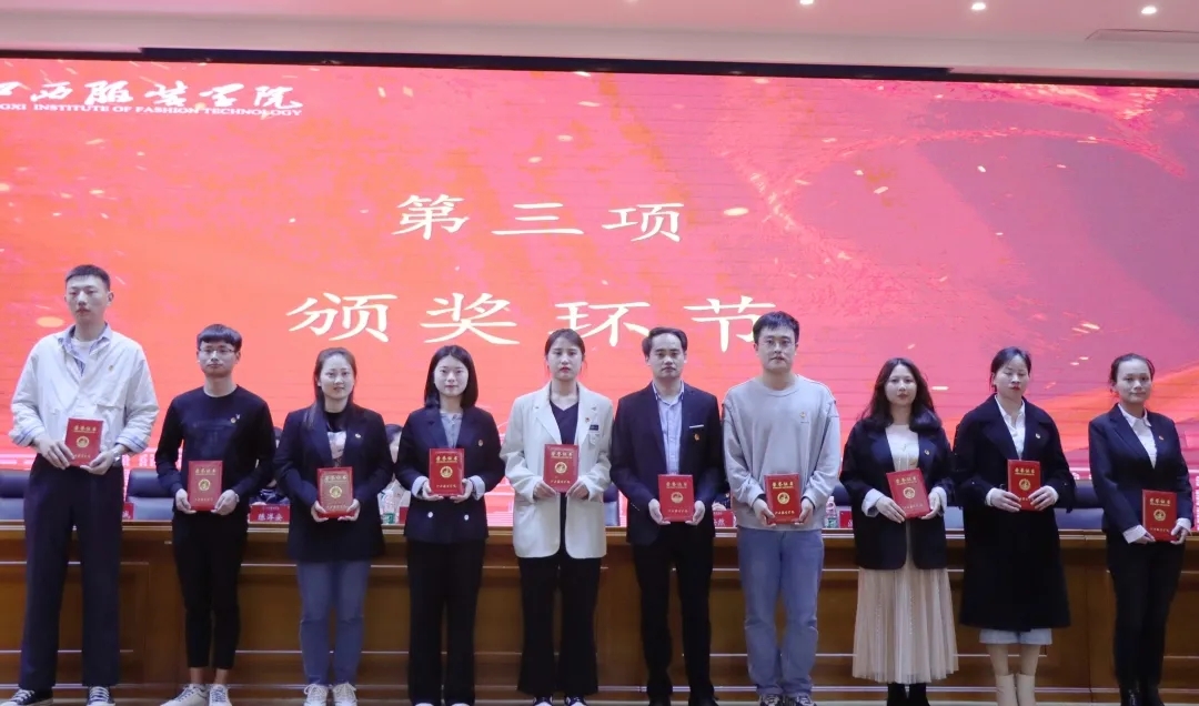 校团委书记孟安然宣读了《关于表彰2020年度“五四红旗团委(团支部)”“优秀共青团员”等决定》,对过去一年在学校共青团工作中涌现出的一批先进集体和优秀个人进行了表彰。杨清莹等599名“优秀共青团员”,杨磊等130名“优秀共青团干部”,刘勰雨等10名“十佳团支部书记”,王若琳等10名“优秀团务工作者”,服装工程学院分团委、艺术设计学院分团委、商学院分团委等3个“五四红旗团委”,2018级品牌策划与时尚买手本科1班团支部等39个“五四红旗团支部”受到学校表彰。