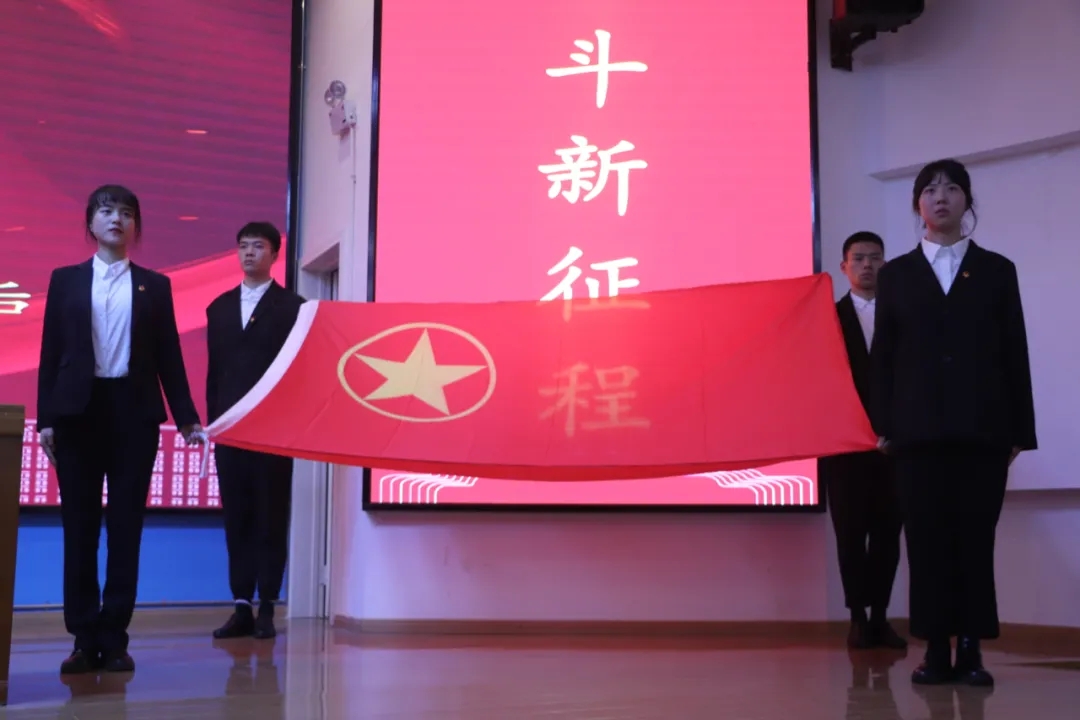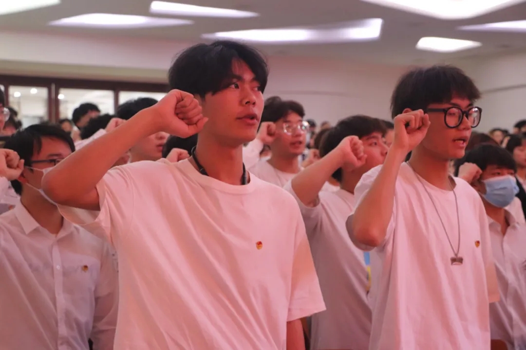 全体青年团员右手握拳,面向团旗,重温誓词。