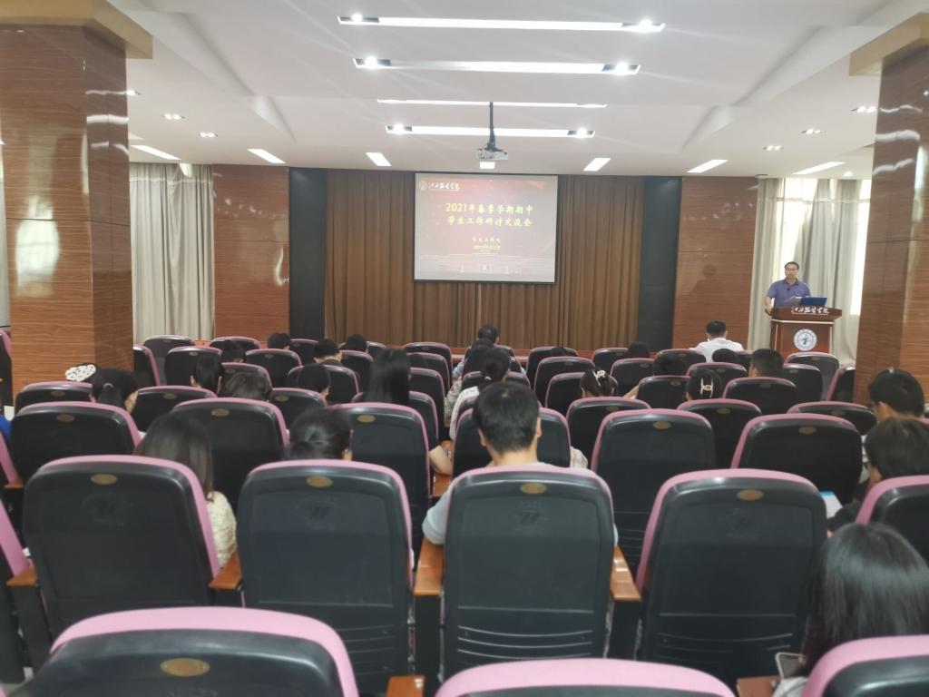 新闻中心讯(学工处供稿)5月13日,我校在行政楼一楼报告厅召开2021年春季学期期中学生工作研讨交流会,学校党委副书记唐新强、学工处处长邓良峰、副处长黄朝辉及全校无课学工人员参加了此次研讨会,学工处处长邓良峰主持会议。